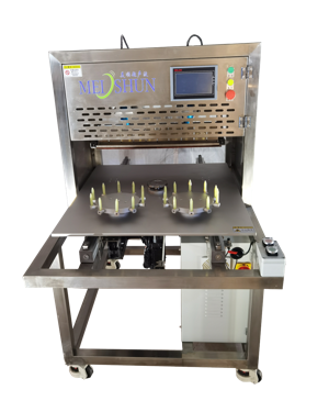 該設備配備單把超聲波刀片,可切圓形(只限一個圓蛋糕),也可切方形 |